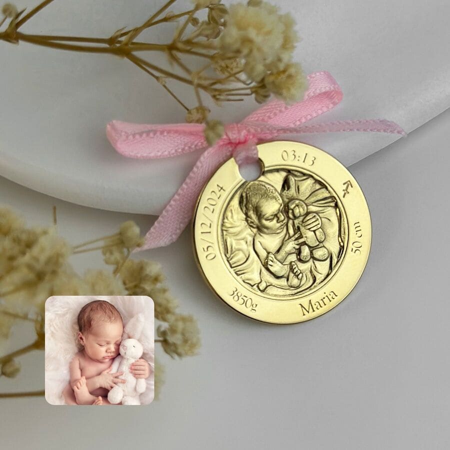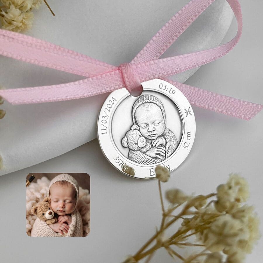 Klassische Münze mit Babyfoto, 30 mm (925 Silber)