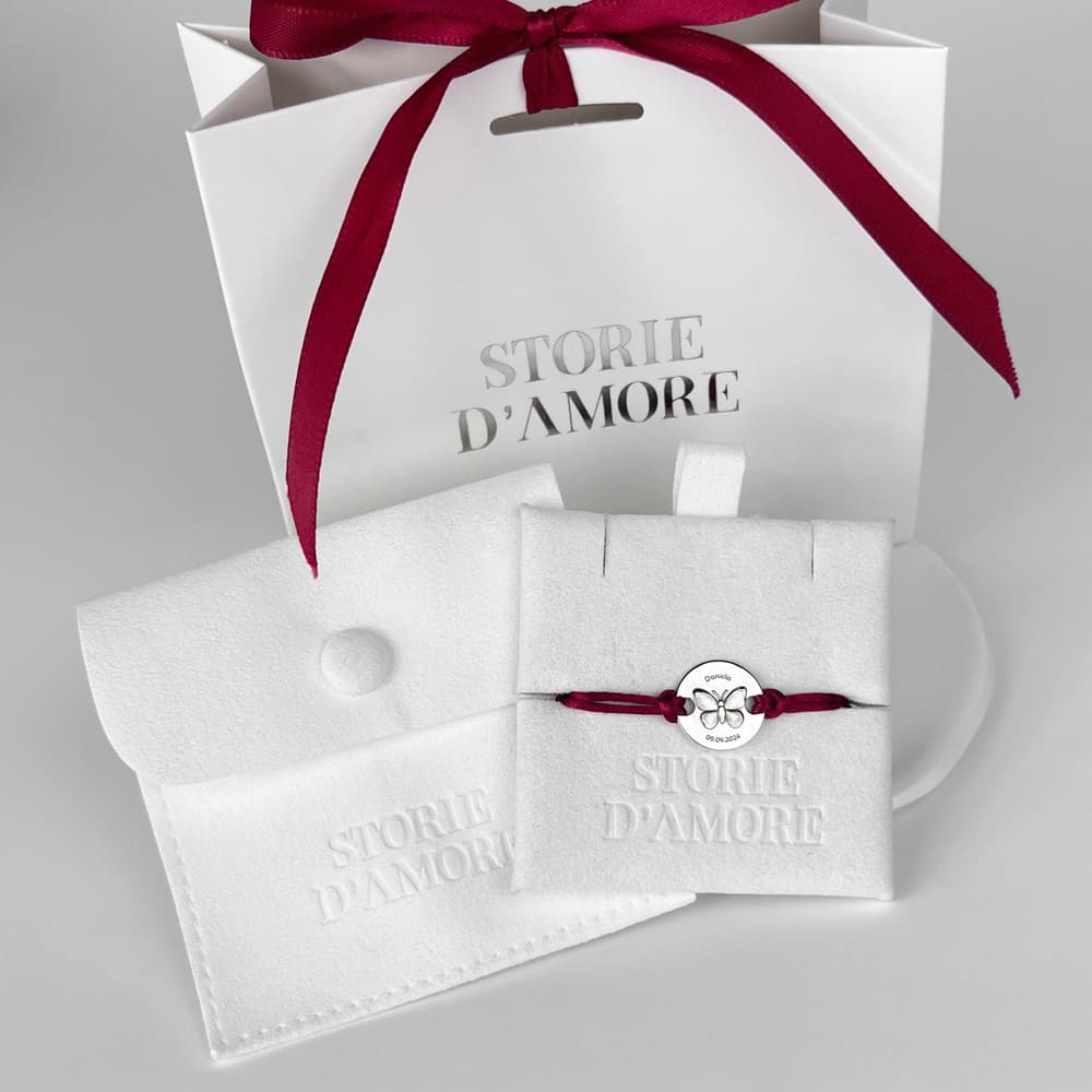 Ein wunderschönes rundes Silberarmband aus 925 Sterlingsilber, zart graviert mit einem Schmetterling, personalisiert mit einem Namen und Datum — ein dezentes Symbol der Liebe und Zärtlichkeit für dein kostbares Kleines.