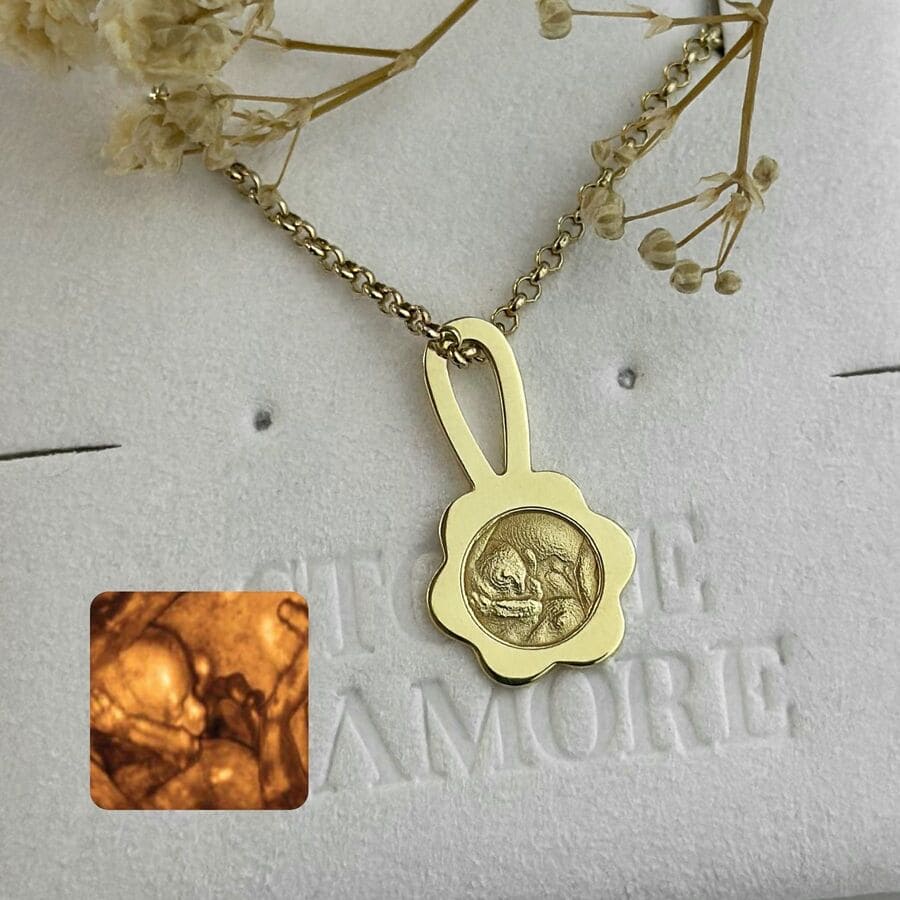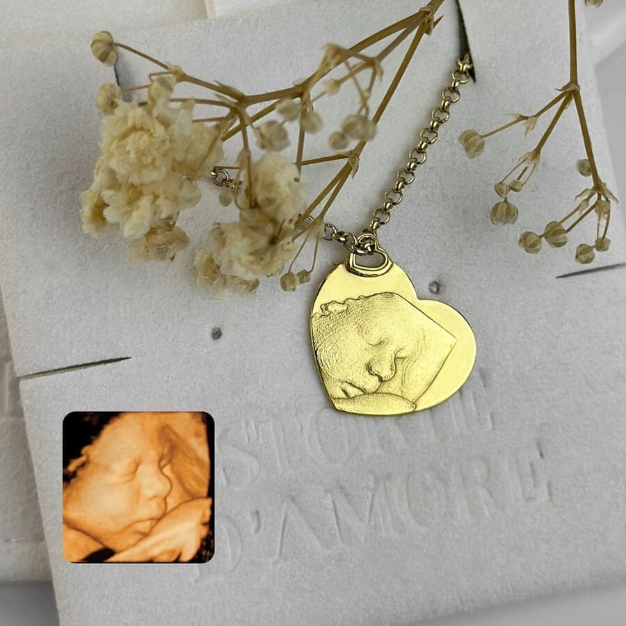 Herzanhänger mit Ultraschallgravur des Babys, 925 Silber