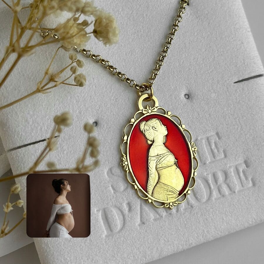 Anhänger in Form einer schwangeren Silhouette mit Baby-Ultraschallfoto, 925 Silber