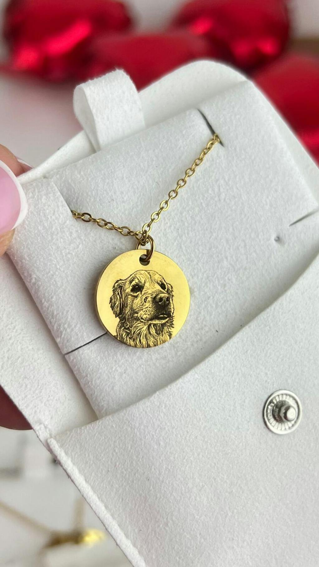 Un lănțișor superb și foarte special! Medalionul cu portretul cățelușului meu este realizat cu multă atenție la detalii și seamănă perfect cu fotografia. Este o bijuterie delicată, cu o valoare emoțională mare. Îl port cu mare drag! 🐾✨