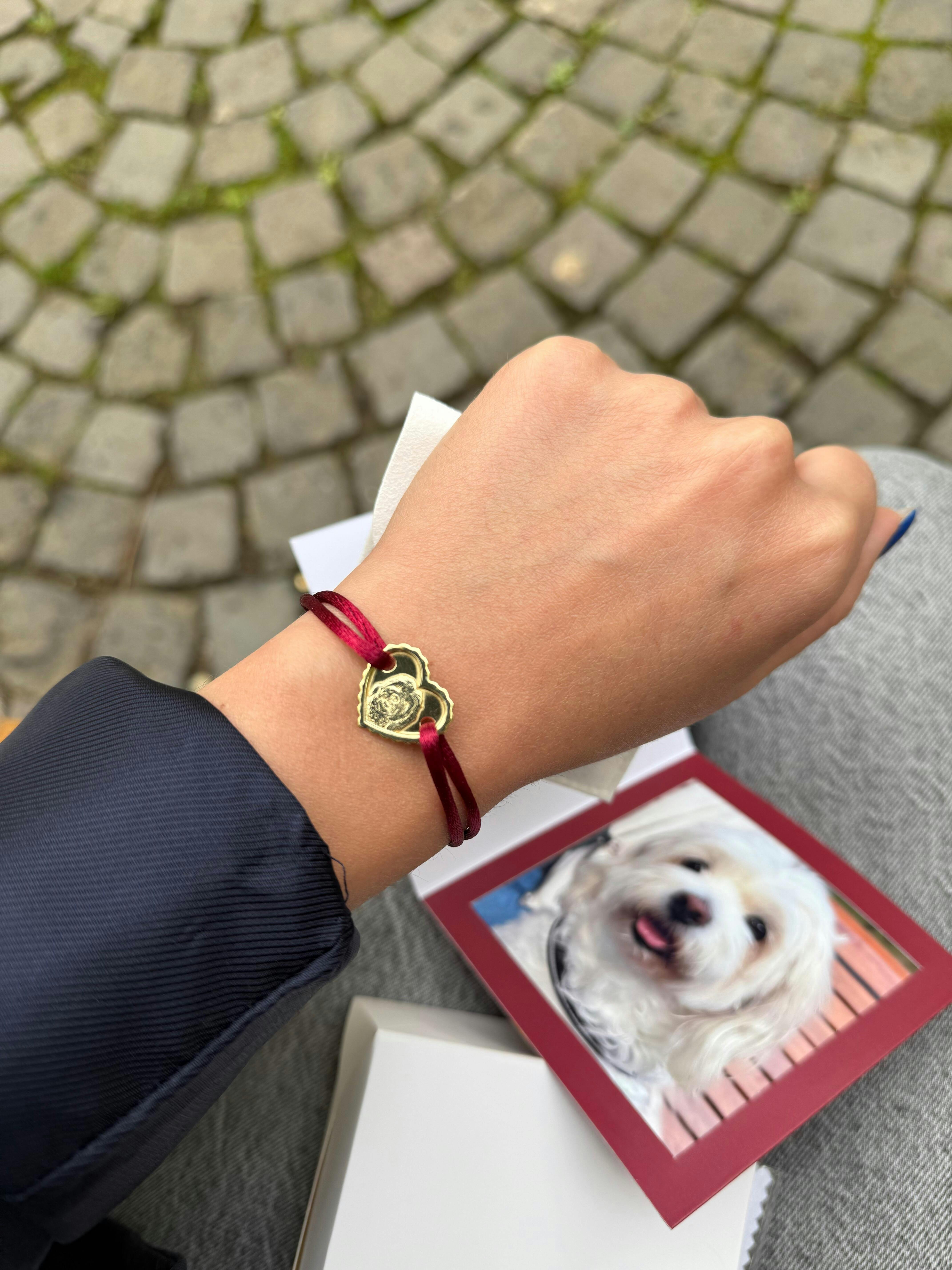 Brățară inimă cu portret personalizat al animalului de companie, argint 925