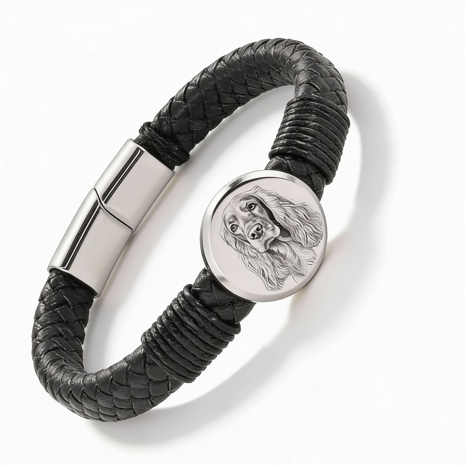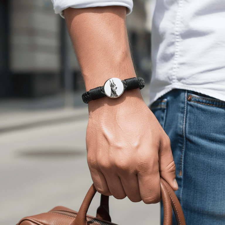 Această brățară pentru bărbați este realizată din piele naturală împletită și oțel inoxidabil, concepută pentru purtare zilnică, cu accent pe confort și durabilitate. Are un charm rotund din metal pe care gravăm fotografia ta într-un portret detaliat – un mod plin de semnificație de a păstra aproape pe cineva drag.