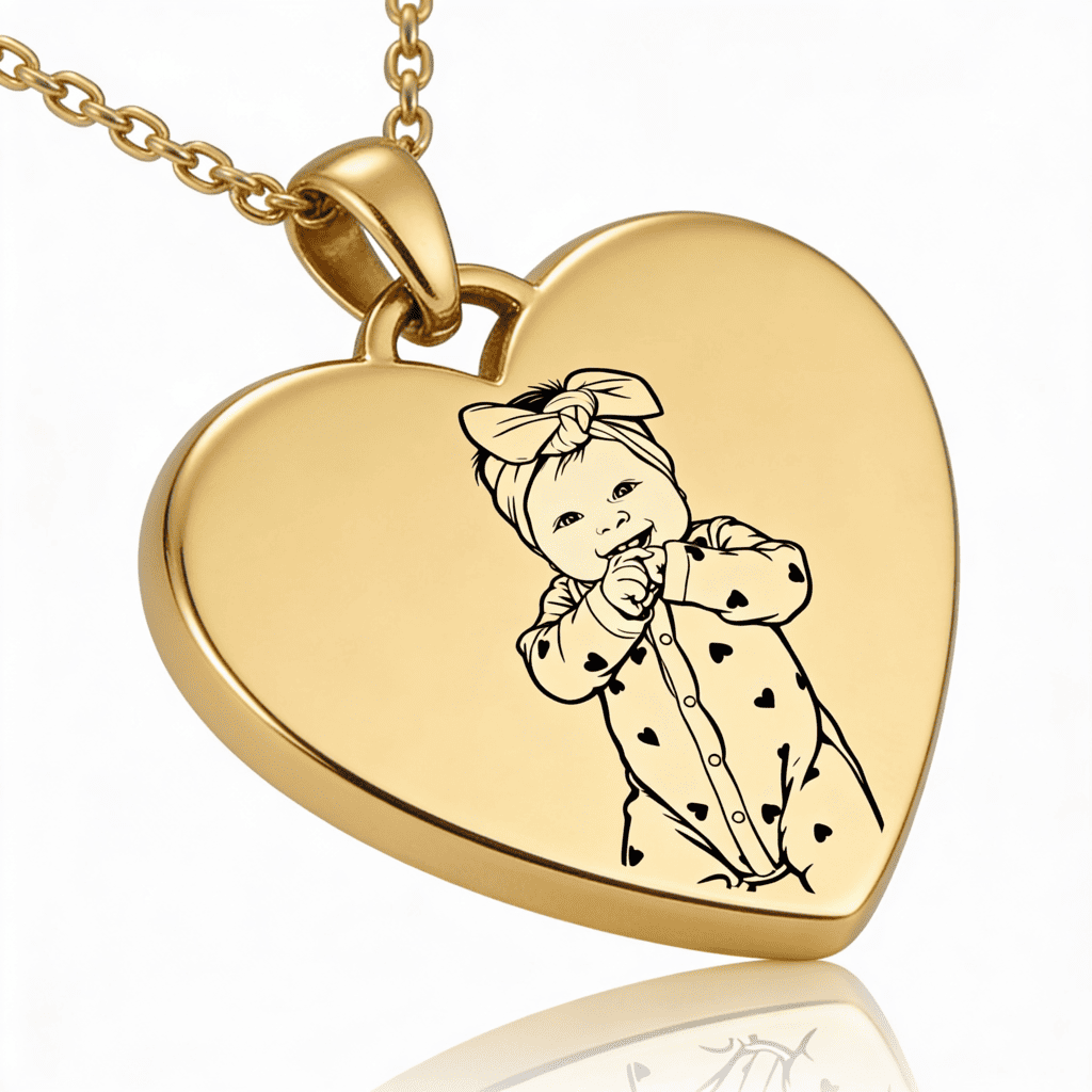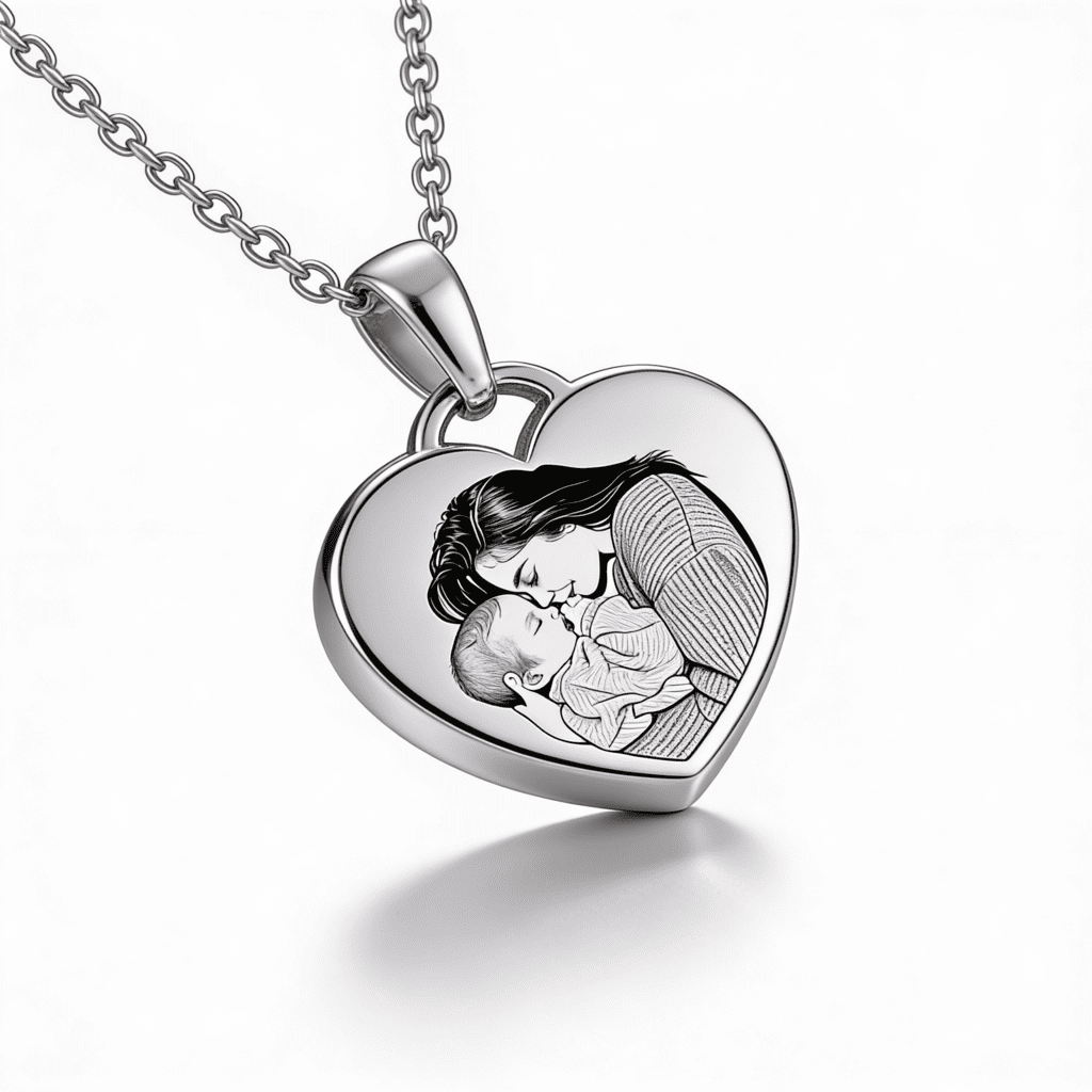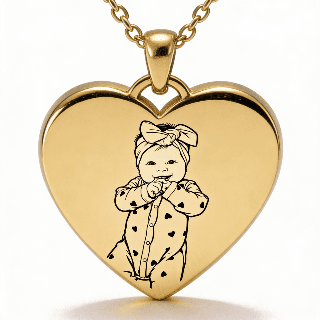 Un pandantiv elegant în formă de inimă, personalizat cu fotografie – o bijuterie subtilă, dar profund emoționantă, pe care o poți purta zi de zi. Fotografia ta preferată este transformată într-o gravură clară și detaliată, iar un colier simplu devine un simbol puternic al persoanelor pe care le iubești cel mai mult.